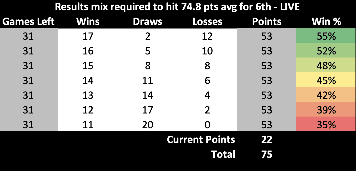 The above table gives you an indication of the sort of run Charlton need to go on between now and the end of the season to hit the average amount of points required for a top six finish in League One (74.8)