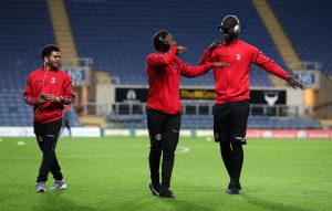 Charlton Athletic’s Jay Dasilva (left) Tariqe Fosu and Naby Sarr on the pitch before kick off