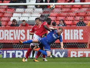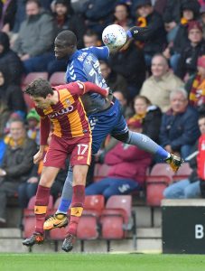 Charlton Athletic’s Mouhamadou-Naby Sarr out jumps Bradford City’s Alex Gilliead