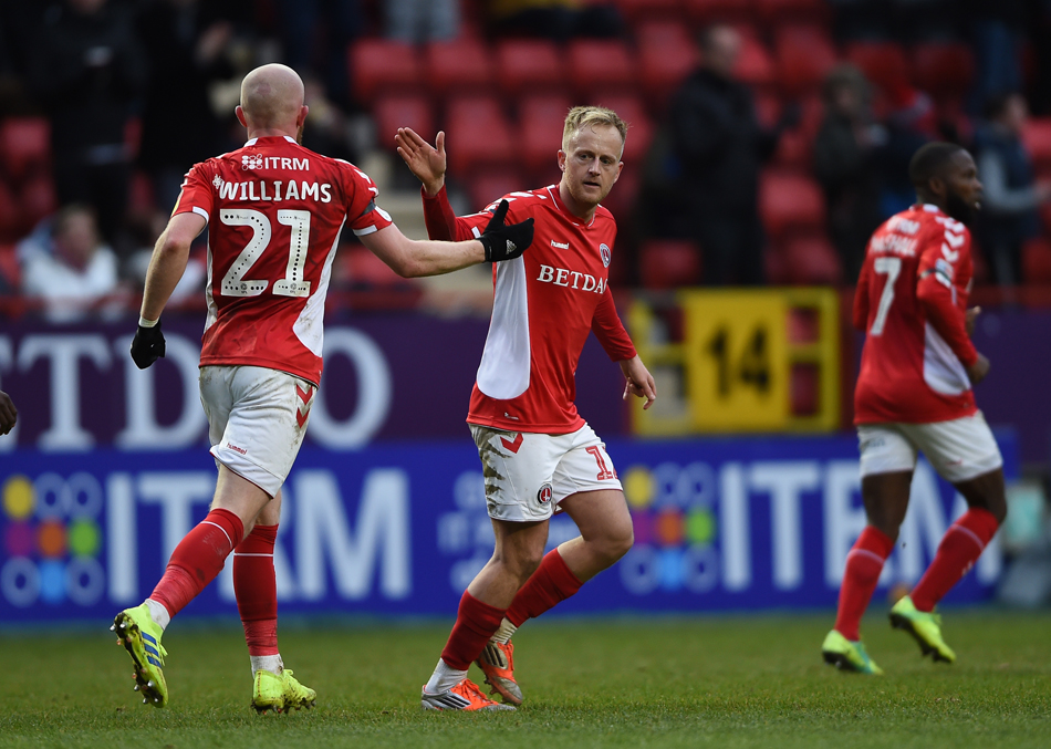 Charlton Athletic’s Ben Reeves celebrates scoring their first goal with Johnny Williams