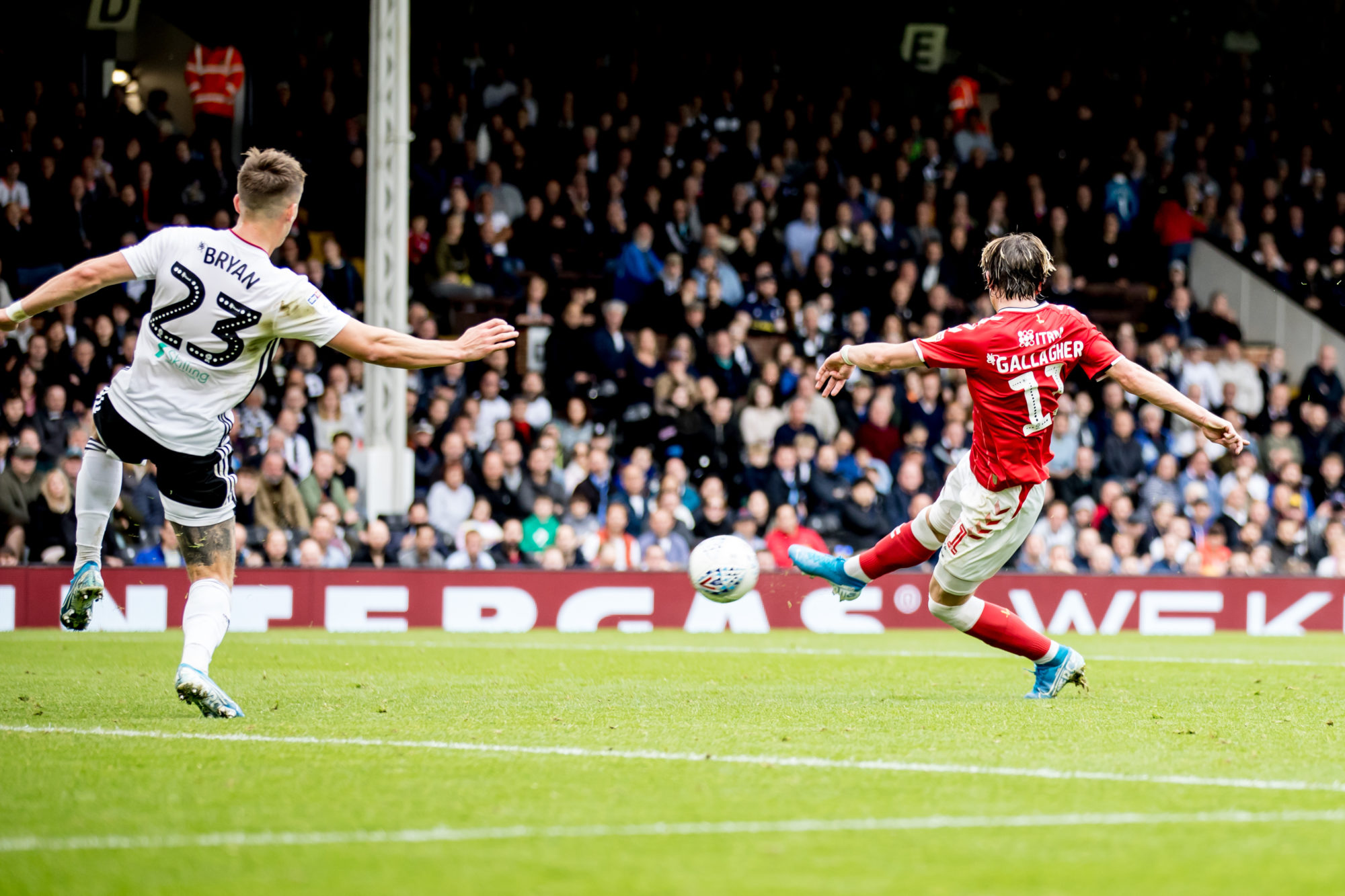 Forster-Caskey’s deep cross was nodded down by Chris Solly, into the path of Chelsea loanee Gallagher who opened the scoring on his return to west London.