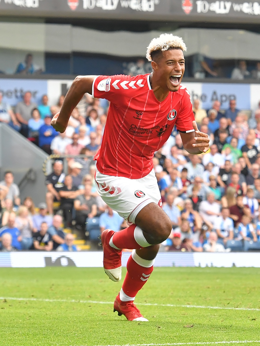 Charlton Athletic’s Lyle Taylor celebrates scoring his side’s second goal of the game