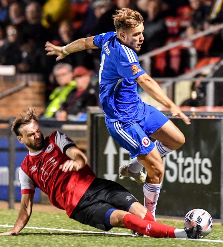 Kai Innocent headed onto the roof of the net from a Brad Barry cross before Welling had a spell that put the Sports onto the back foot. Two former Charlton Athletic academy players combined but Ade Azeez was not able to get over Aaron Barnes’ cross to divert it towards the goal.