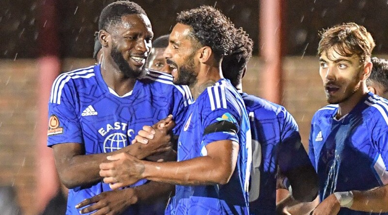 Main Pic Teammates congratulate Stefan Payne’s winner