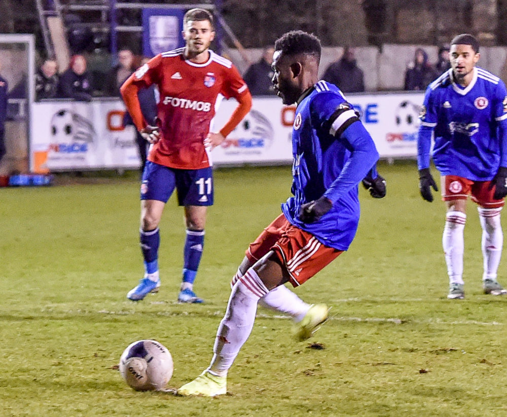 Henry made a good save from Crichlow-Noble’s header before making another brilliant one to keep out Diaz Wright with his feet. His luck ran out when it came out to Chiori Johnson and as he burst forward he was brought down and another Welling penalty was awarded.