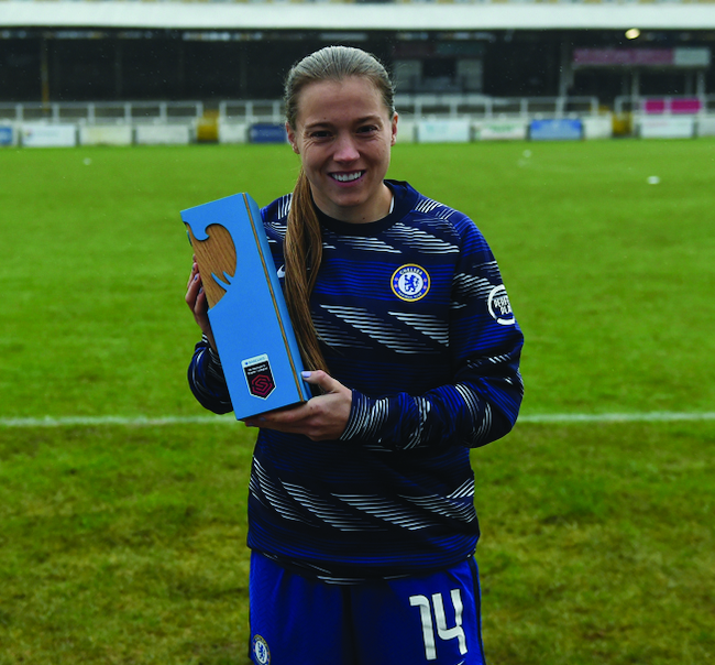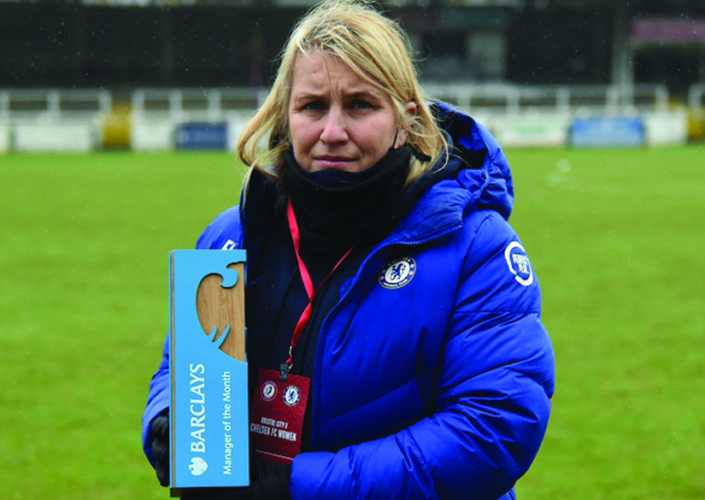 Chelsea manager Emma Hayes pictured top, has won the January manager of the month, while her striker Fran Kirby gets the gong for January player of the month.