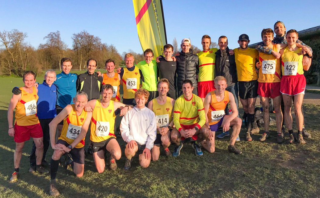 Jonny Cornish, Oxfordshire cross country champion, led the 23 gold-and-scarlet-vested Hercules Wimbledon runners over the line, finishing third of the 243 runners in the five miles race in 27:17.