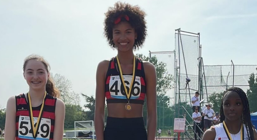The biggest contributor to this impressive medal haul was multi-talented combined eventer Jasmine Nkoso. In the U15 girls events, Nkoso picked up three gold medals and one silver. Her win in the shot with a PB of 12.73m sees her top of the UK age group rankings for the year to date. She also won the high jump with 1.55m and the javelin with another PB of 29.23m.