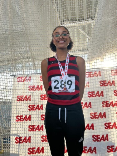 Sasha Nolan was fifth in the U13 girls 60m final in 8.39  on Saturday after running 8.37 in her heat. She then claimed a silver medal in the long jump with 4.67m.