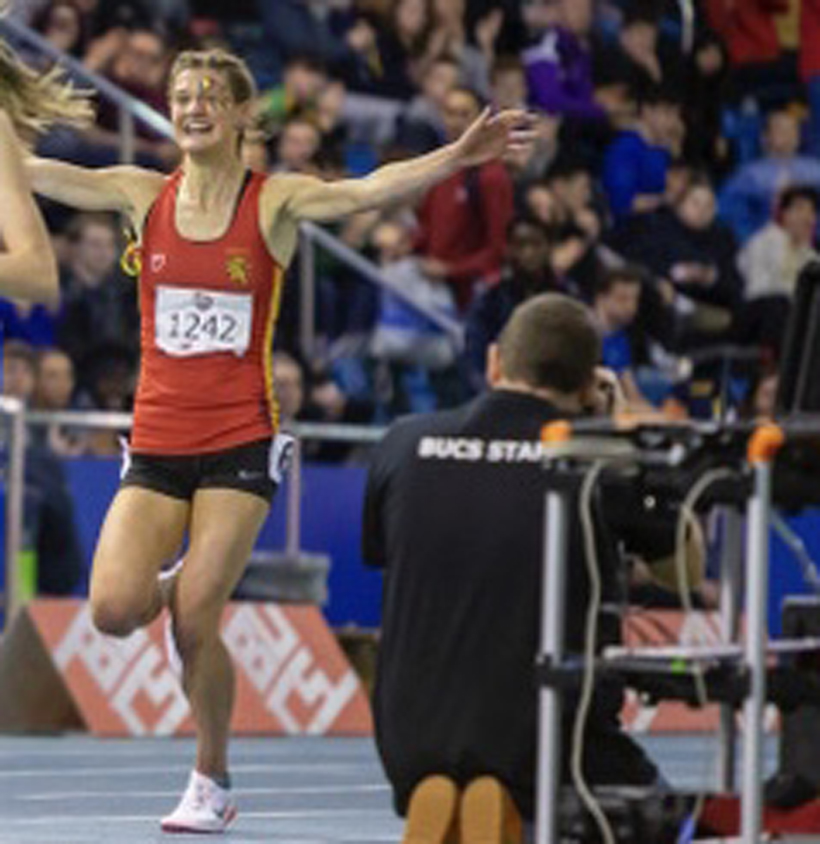 Main Pic: Saskia Millard number 1242 wins 3000m gold at the BUCS Champs in Sheffield.