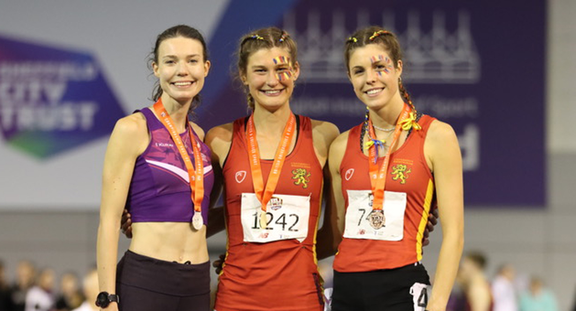 Main Pic: Saskia Millard number 1242 wins 3000m gold at the BUCS Champs in Sheffield.