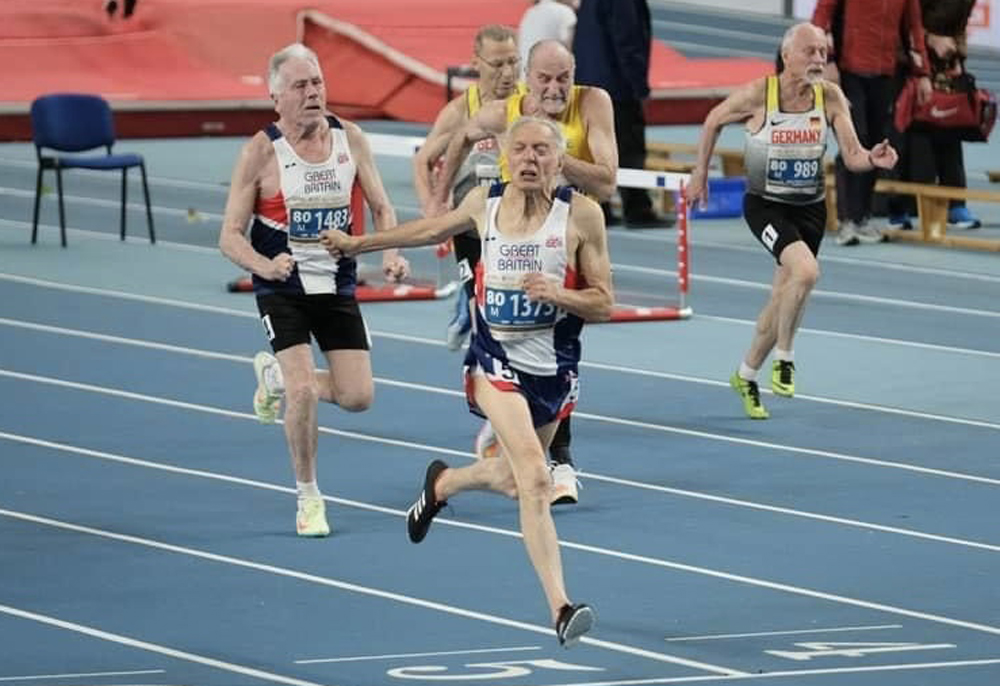 M80 Allan Long claimed gold medals in the 60m in a season’s best 9.36 seconds and then two days later on Friday the 200m in 32.51 at the World Masters Indoor Championships in Poland. He rounded off a superb trip by adding a triple jump silver, jumping 8.06m as well as racing in both the M80 sprint relay and the mixed relays.