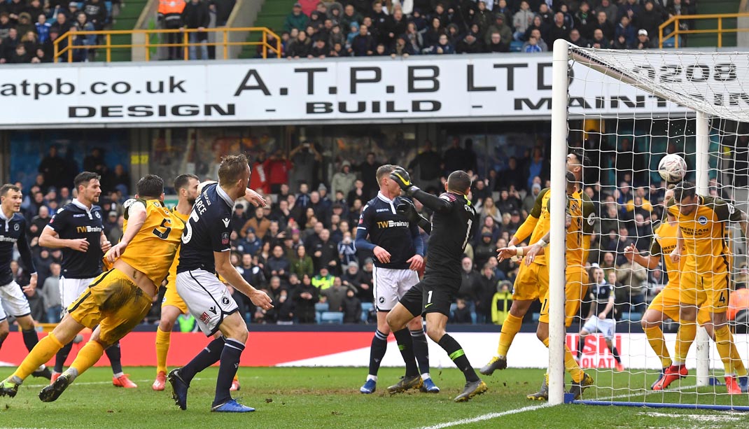 Lewis Dunk found the bottom left corner. Pressure back on Millwall.