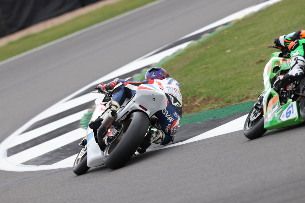 For Sunday’s race, Horsman struggled to keep the front wheel down as the lights went out and the 25-lap feature Race commenced. The result was a drop of five places on the opening lap. Although he remained fourth in the GP2 class he now had eight British Supersport riders between him and the British GP2 rider in third.