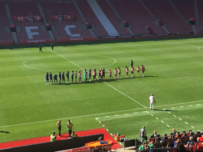 On the fourth minute of the five added at the end of the fist half, Southampton’s Alex Jankewitz tried his luck from range, and the ball ricocheted off the foot of Cumming’s right post but thankfully for Chelsea cleared.