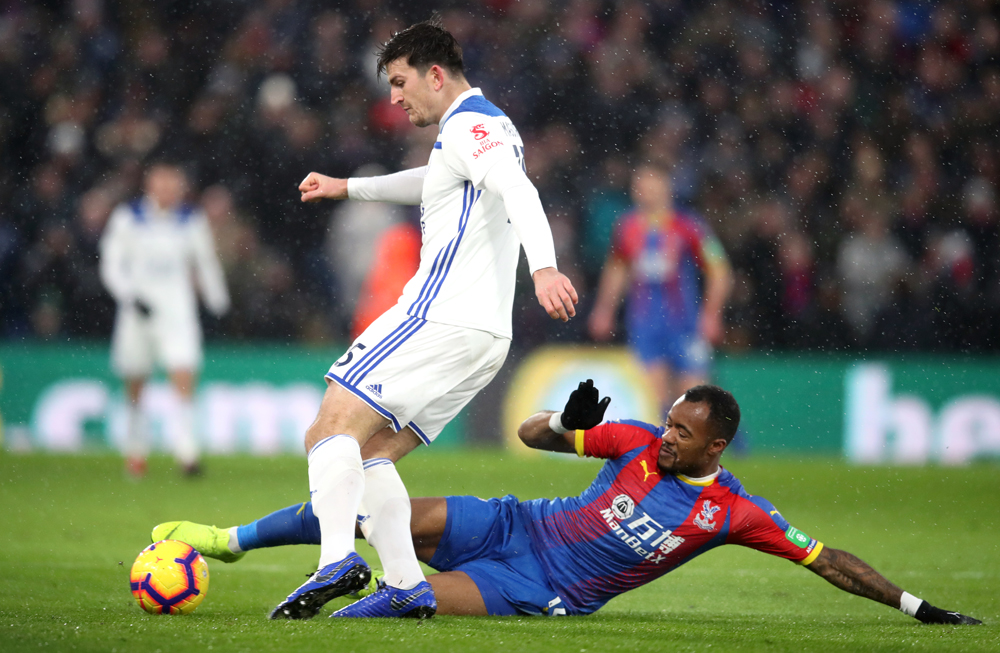 Leicester City’s Harry Maguire (left) and Crystal Palace’s Jordan Ayew battle for the ball during the Premier League match at Selhurst Park.