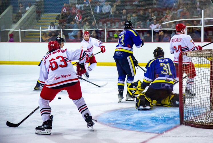 Streatham scored a third on 49 minutes. Brandon Miles and Ziggy Beesley had been denied by Miller before Luke Brittle opened his account, tapping in the puck on an empty net rebound.