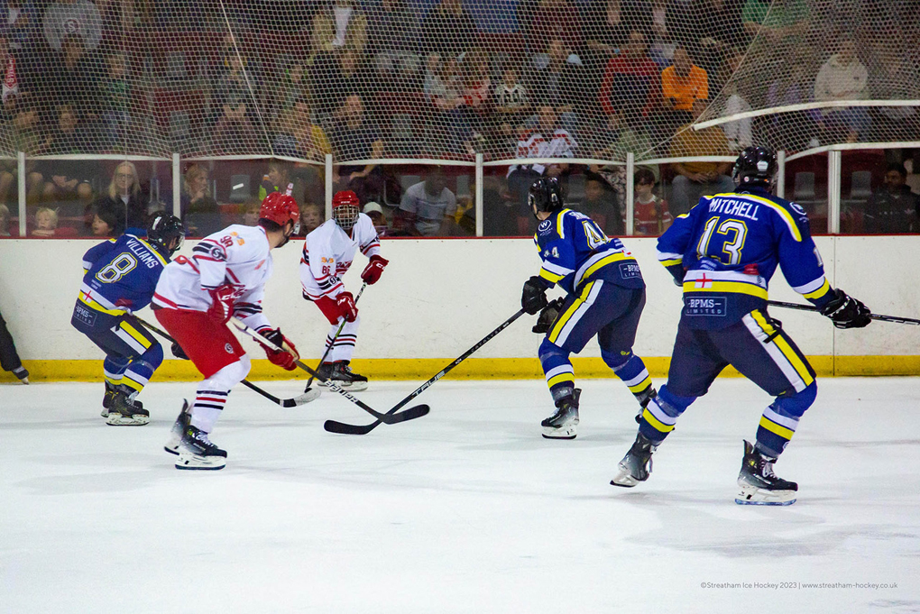 Streatham scored a third on 49 minutes. Brandon Miles and Ziggy Beesley had been denied by Miller before Luke Brittle opened his account, tapping in the puck on an empty net rebound.