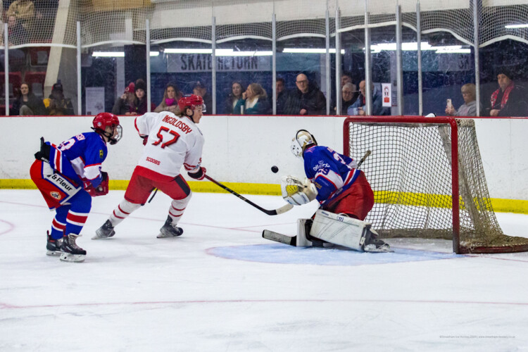 Streatham were on the backfoot at the start of the third and already killing a roughing penalty to Brendan Baird from the end of the second period. At 40:17 a delay of game call against Sam Waller put the RedHawks on a five-on-three penalty kill.
