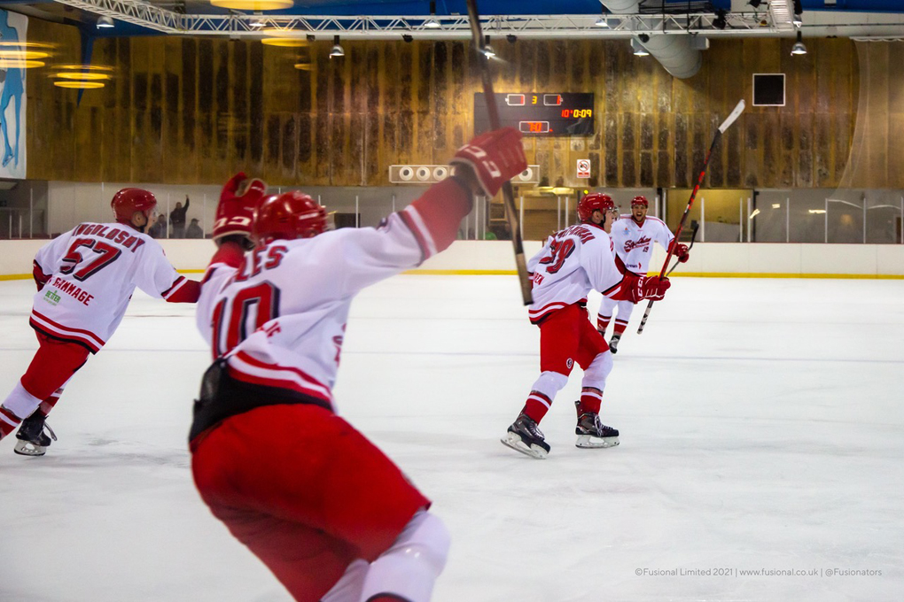 As Streatham left the ice they were greeted by confetti and a party atmosphere from the away block, belatedly celebrating both the title win and result on the night. The two points headed back to South London thanks to a brace from Ben Paynter and lone efforts from Ryan Watt, Brandon Miles, Ben Ealey-Newman, Scott Bailey and Vanya Antonov.