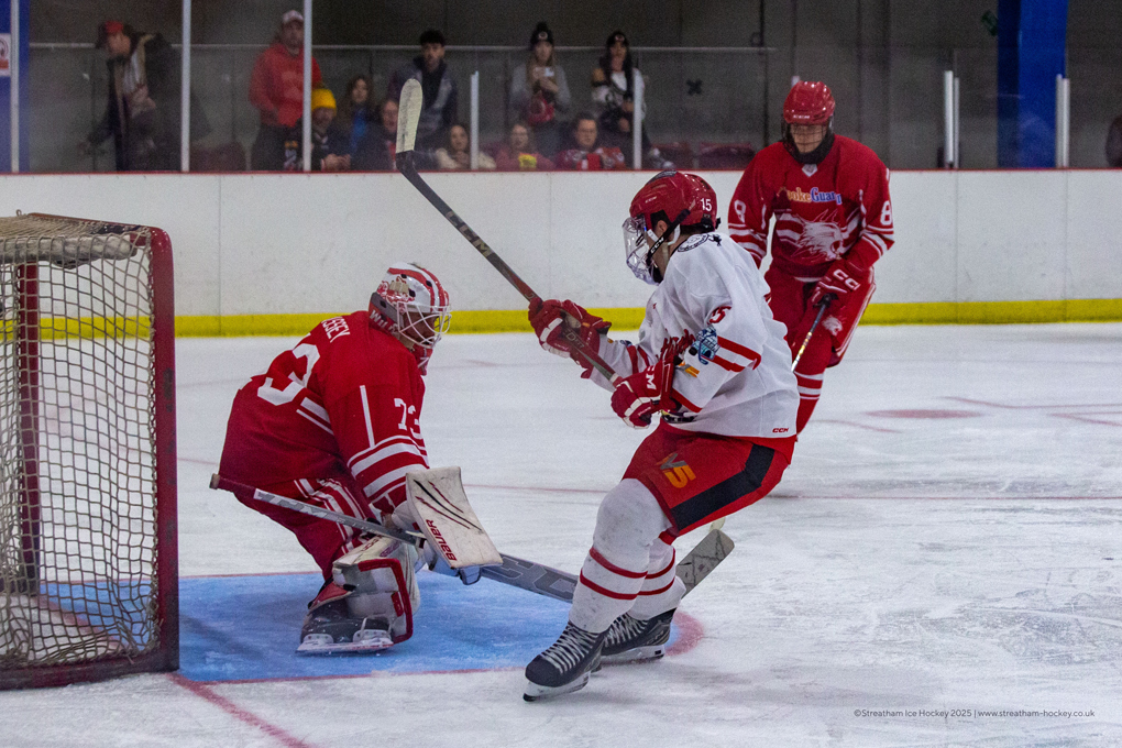 Streatham netminder Danny Milton saw his shutout broken on 22 minutes when Luca Kirk-Browne set up Oskar Sagan to make it 4-1.