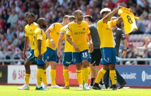 Charlton Athletic’s Lyle Taylor (right) holds up a shirt of injured teammate Jake Forster-Caskey as he celebrates scoring his side’s first goal of the game from the penalty spot during the Sky Bet League One match at the Stadium of Light, Sunderland during the Sky Bet League One match at the Stadium of Light, Sunderland.