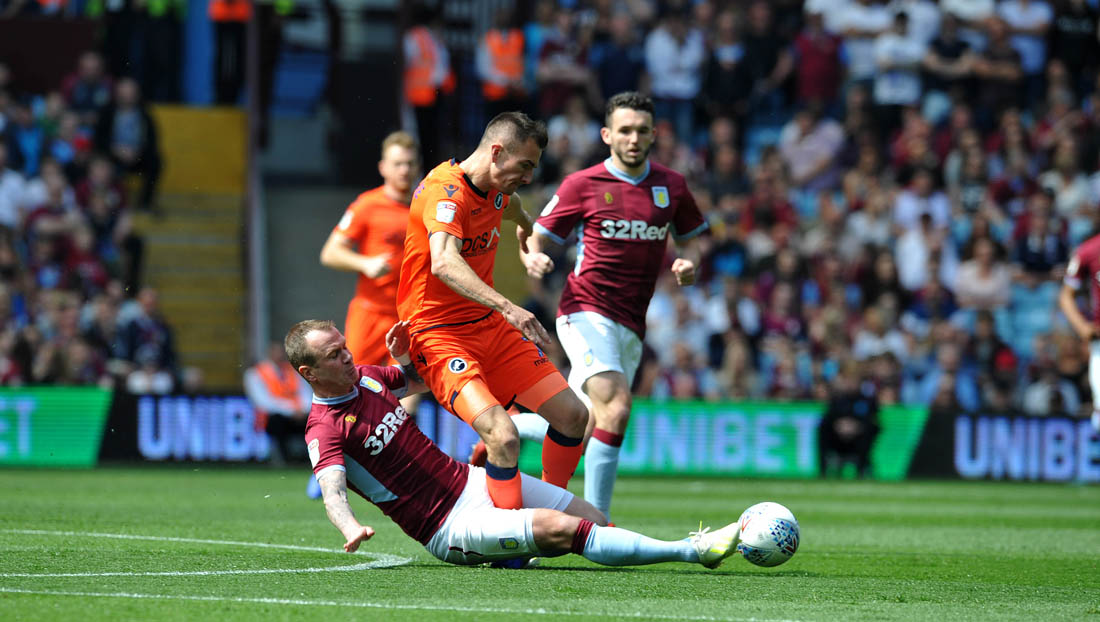 Jack Grealish – who was a thorn in the Lions’ side all afternoon – played a major part in their opening goal, creating space for Anwar El Ghazi to pick out Jonathan Kodjia, who made amends for his earlier miss by sliding home his eighth Championship goal of the season and second in as many games.