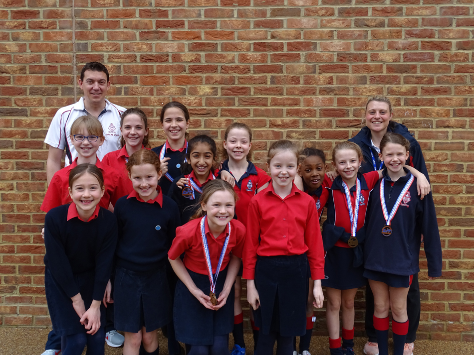 Sophia Sahai, Margaret Forster and Anna Forster (year six) worked together to all finish in the top 20 in a field of over 150 competitors in the U11s heat. Their combined times secured team gold.
