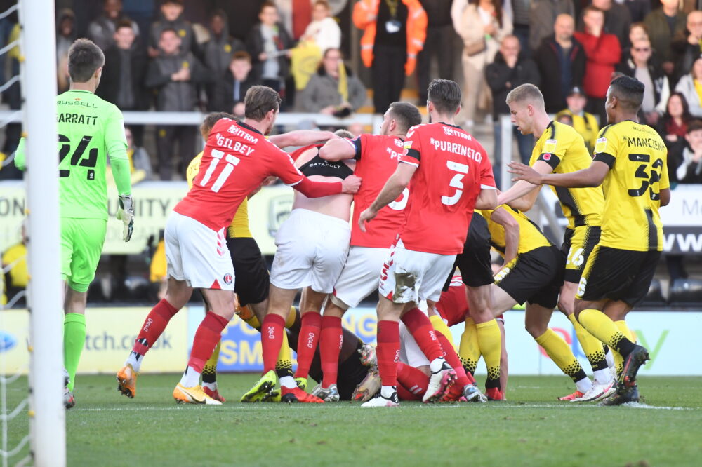 The Addicks had appealed centre-forward Stockley’s sending off against the Brewers. The frontman and former Charlton defender Deji Oshilaja were both dismissed by referee Trevor Kettle for their tangle in the penalty area.