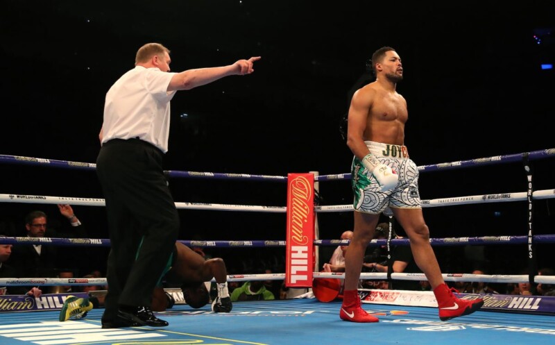 It was only Joyce’s fourth professional fight but he had too much power for the champion, who was down three times before being counted out by referee Terry O’Connor.