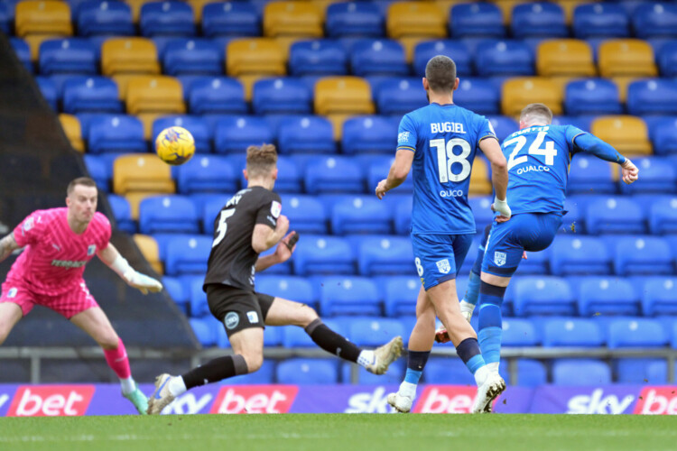 Barrow keeper Paul Farman came to meet the pass but could only head into the path of Ronan Curtis, who volleyed an effort over the stopper and into the net on his first start for the club.