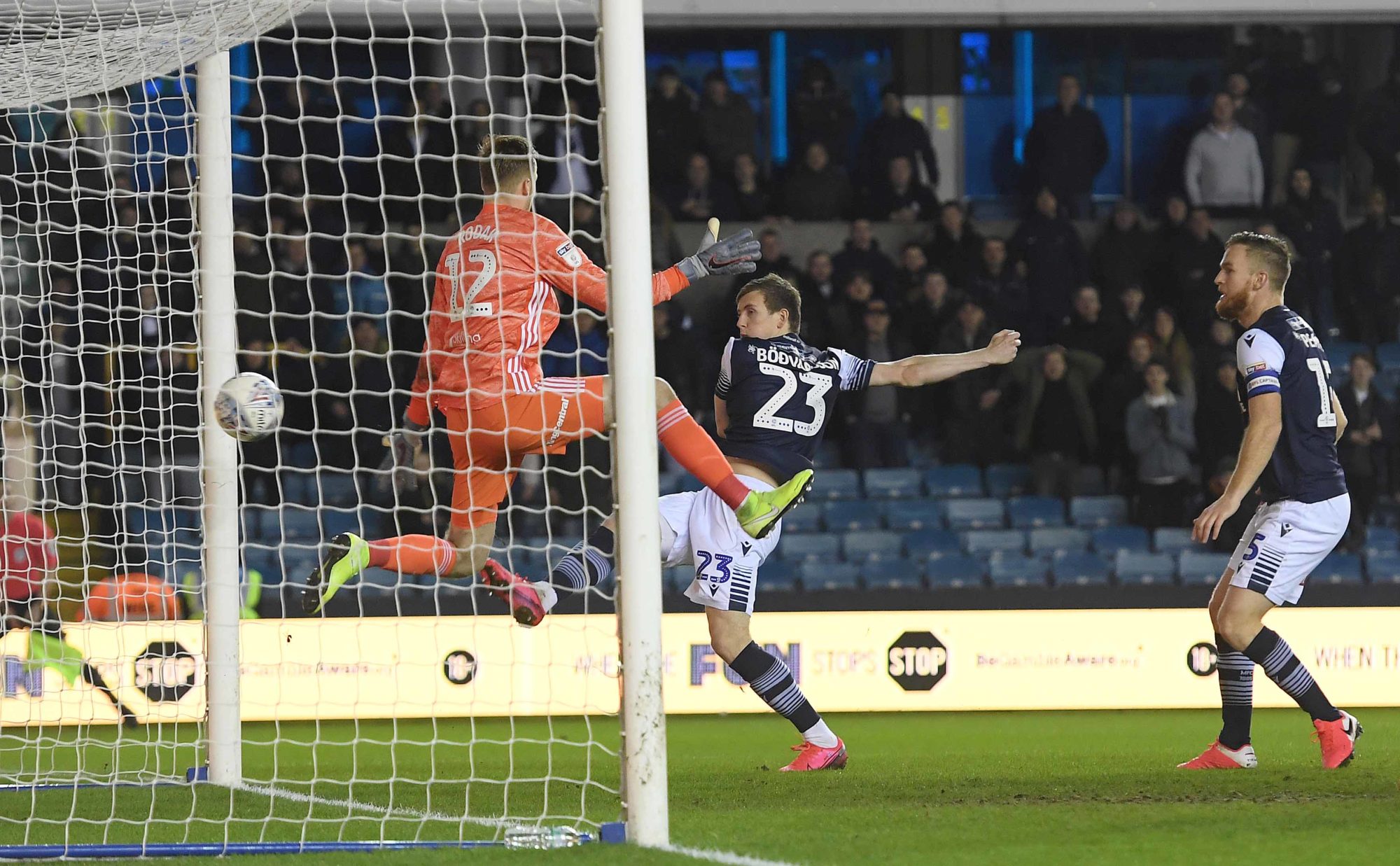Jed Wallace missed a penalty that could have made it 2-1 – his powerful kick striking the top of the crossbar.