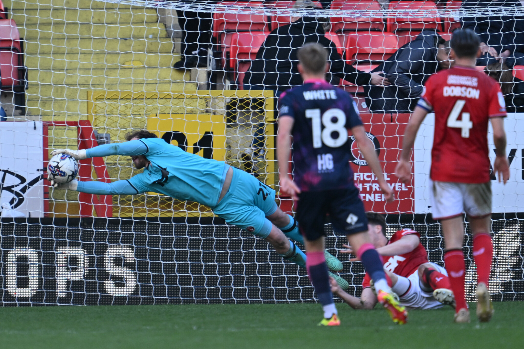 Harry Isted did make a couple of saves from Vaidaine Oliver, one of three changes made by visiting boss Steve Evans at the start of the second period.