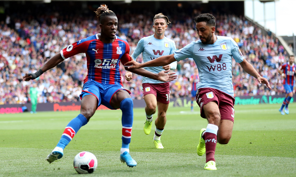 Crystal Palace’s Wilfried Zaha (left) and Aston Villa’s Neil Taylor (right)