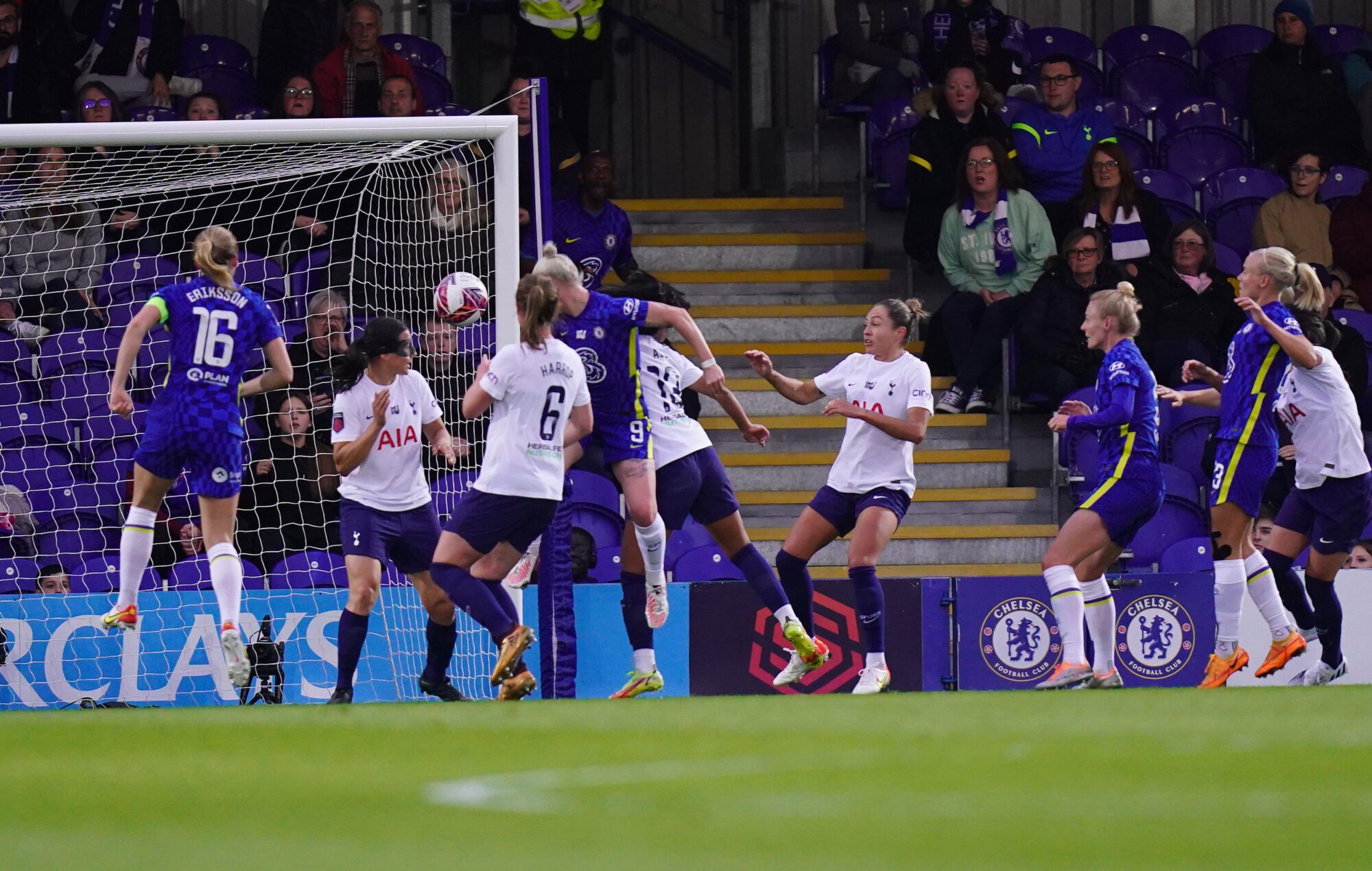 Harder latched onto a Reiten cross but scooped her angled effort over the crossbar as the Blues went for a second goal.