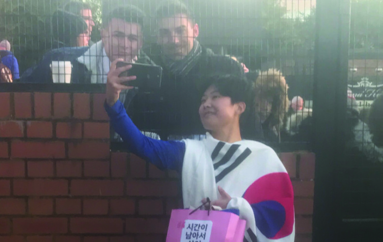 Picture: Ji So-Yun poses for a selfie with fans after the 4-1 of Arsenal