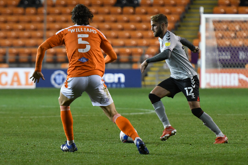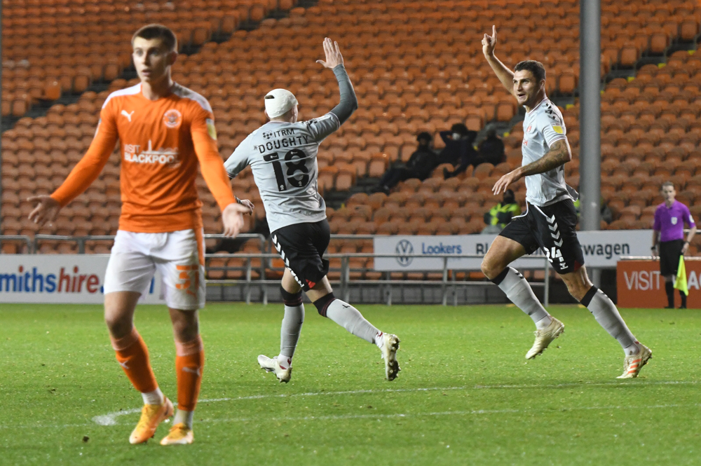 Alfie Doughty. No longer considered a rookie, the fleetfooted wing-back provided the ideal outlet for the defenders to exploit. His spirited runs along both flanks were a constant thorn in Blackpool’s side.