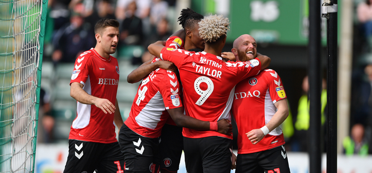 Charlton Athletic’s Lyle Taylor celebrates after the final whistle