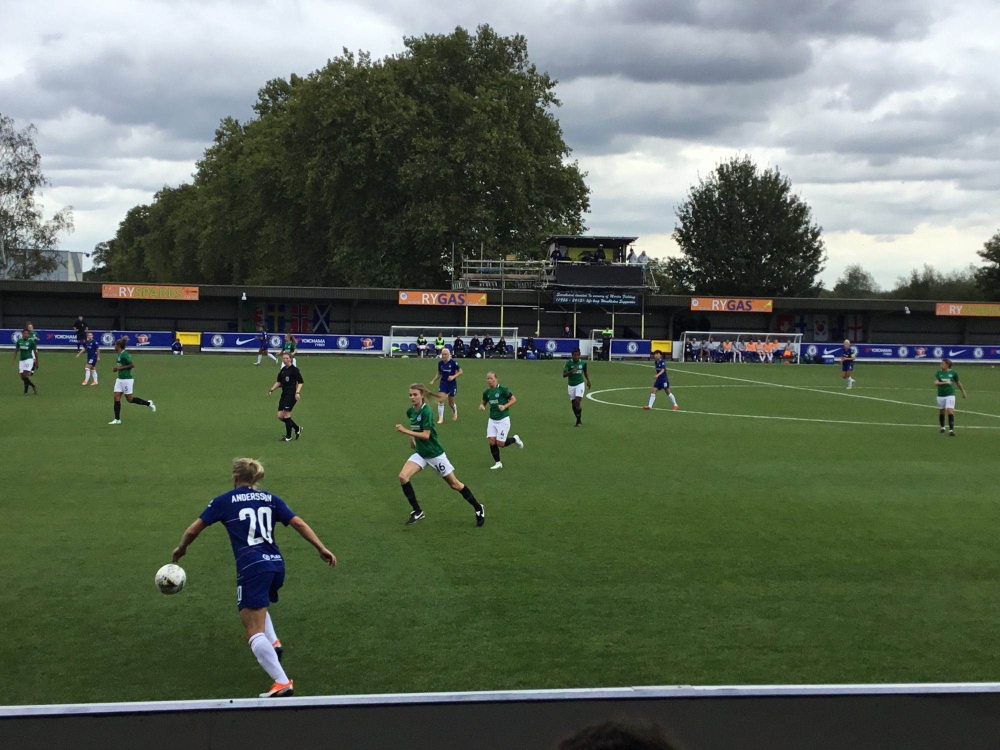 Chelsea should have taken the lead on 13 minutes when a Kirby byline cross fell to Ramona Backmann. Her turn and shot from six yards out beat Hourihan but Fliss Gibbons was on the line to hack the ball clear.