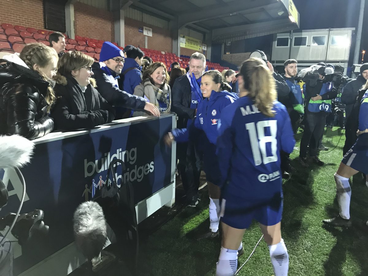 ‘Mini Messi’ Fran Kirby scored twice as Chelsea blasted their way into an historic semi-final of the Champions League with a pulsating 3-1 win, at Kingsmeadow tonight against a talented Montpellier side.