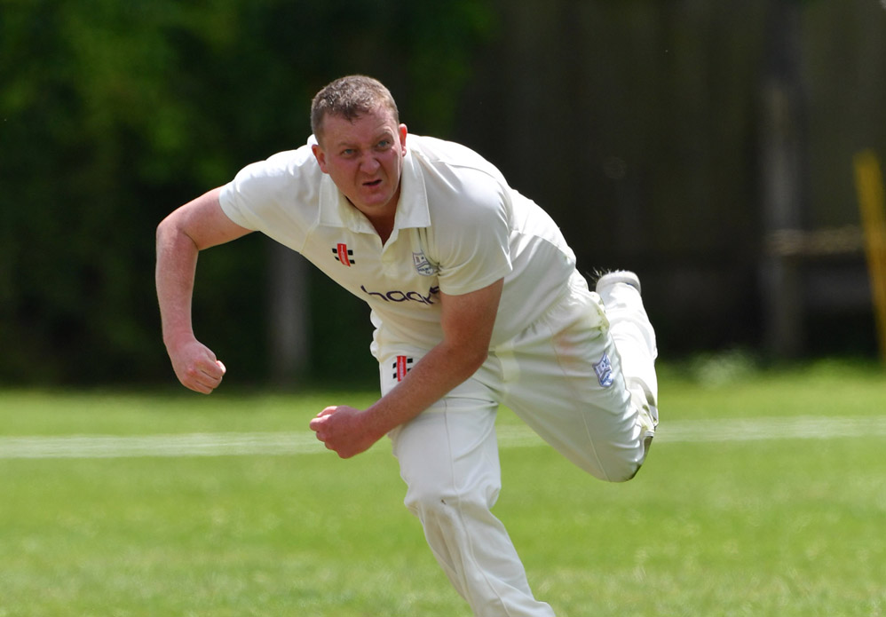 Rob Hill was left stranded on 92 not out when his captain declared at the end of the 53rd over with the score on 208-8. Gunning finished with 3-53 off 11 overs, Gledhill was his usual miserly self with 2-33 off 14. George, in his first outing this season, took 2-61 off 12.