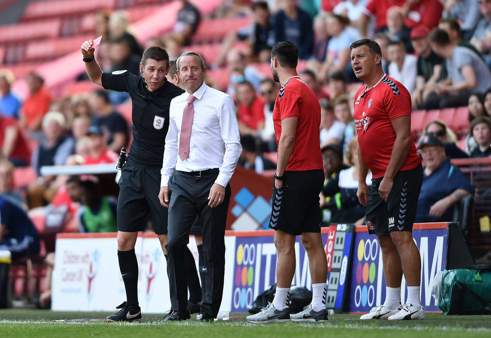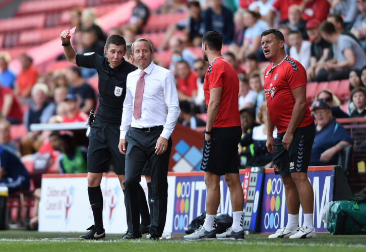 The Addicks boss was left fuming at his red card from referee Matt Donohue.