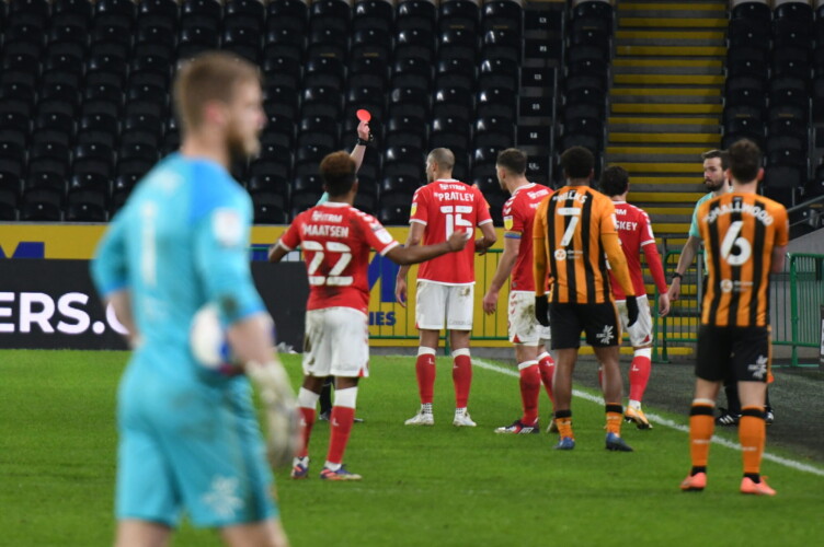 The veteran midfielder, who has been filling in at centre-half for the Addicks recently, was shown a straight red card midway through the second-half of the loss at the KCOM Stadium after kicking out at the Tigers’ Malik Wilks.
