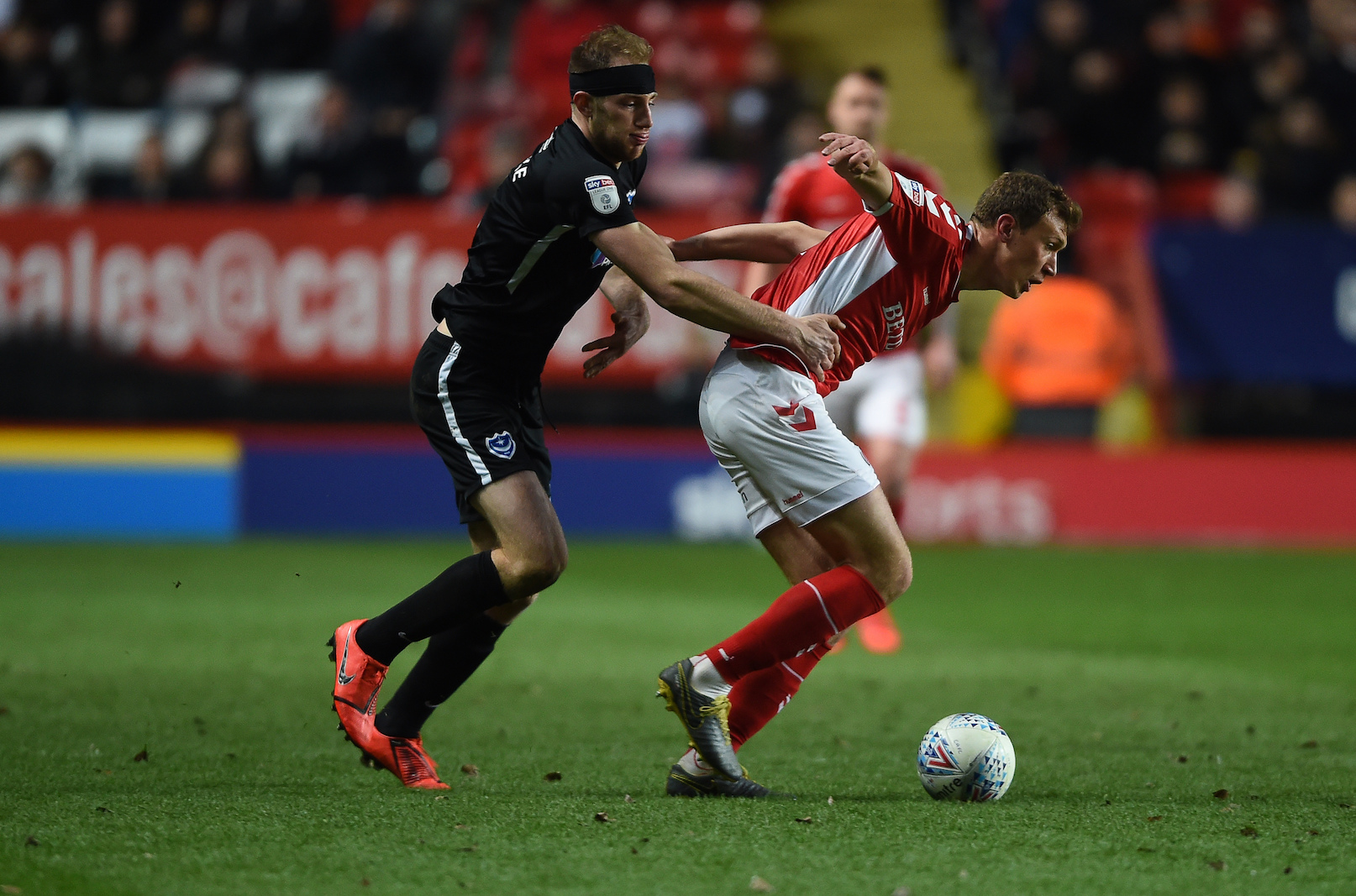 Charlton Athletic’s Krystian Bielik gets away from Portsmouth’s Matthew Clarke