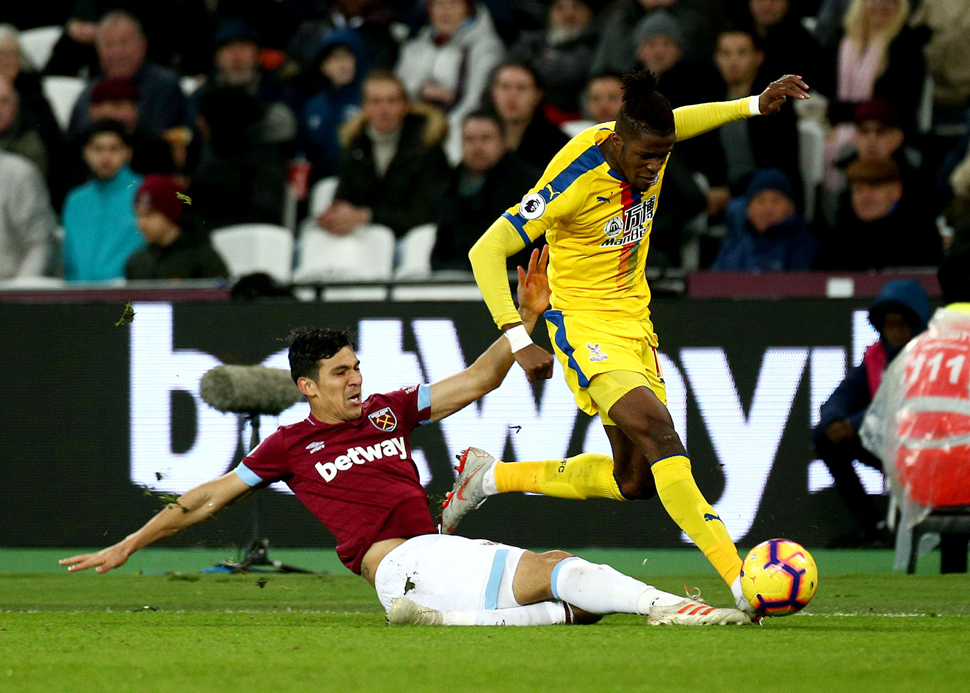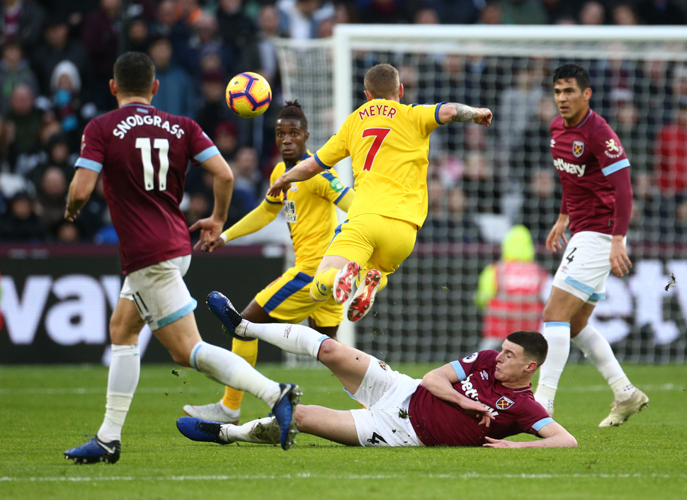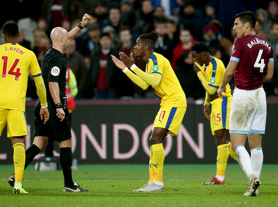 Zaha’s arrived first, with a needless late challenge on Pablo Zabaleta in the first minute of four in stoppage time at the end of the game. Tomkins’ name went into the referee’s notebook for dissent after the final whistle. The defender was angered at what he perceived to be an injustice for the free-kick which led to the hosts’ second goal. He believed Andy Carroll had tripped over his own feet, but Anthony Taylor saw the former West Ham man as culpable for the fall and awarded the foul. Felipe Anderson’s effort was parried as far as Javier Hernandez who made no mistake.