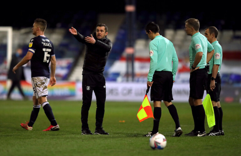 Luton Town boss Nathan Jones has pop at officials over stoppage time call in Millwall draw
