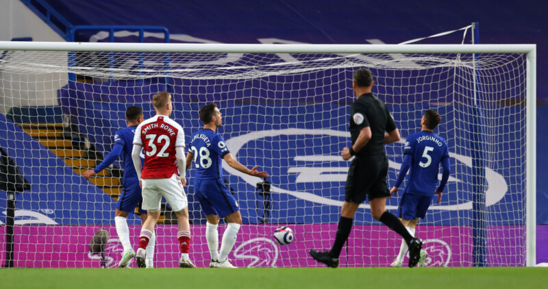 But on 16 minutes a terrible mistake by Jorginho saw the Italian under pressure put the ball back towards his own goal. Kepa did his best to scoop the ball off his goal line, but the ball fell to Smith Rowe who slotted the ball home to give the visitors a 1-0 lead.