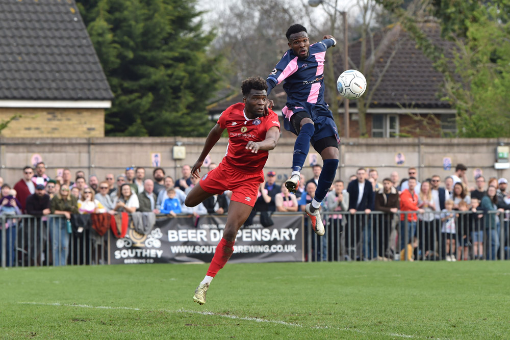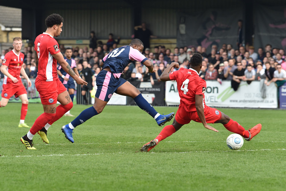 The hosts were struggling to create anything of note in response to Billericay taking the lead, and they were soon further behind after some poor defending. A long clearance was allowed to bounce, and substitute Cook tried to nod back to Preston Edwards from the edge of the box – unfortunately Emmanuel was lurking to ruthlessly volley past the Hamlet keeper from eight yards.