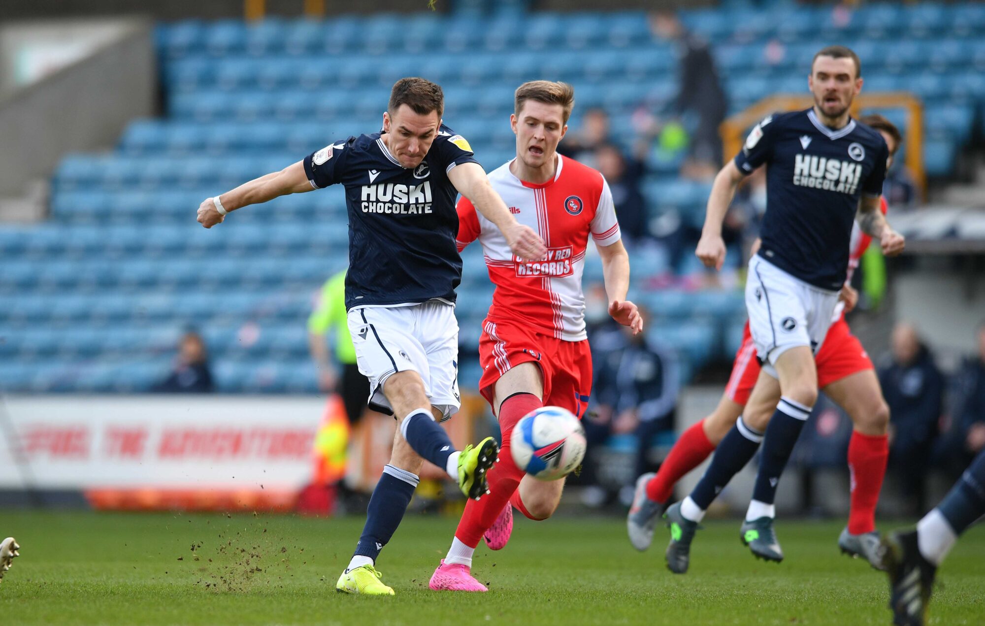 Former Millwall winger Fred Onyedinma had a penalty claim ignored after he appeared to be held by Alex Pearce.