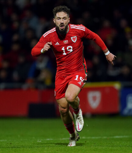 Wales’ Tom Bradshaw during an international friendly match at the SToK Racecourse, Wrexham. Picture date: Wednesday October 11, 2023.